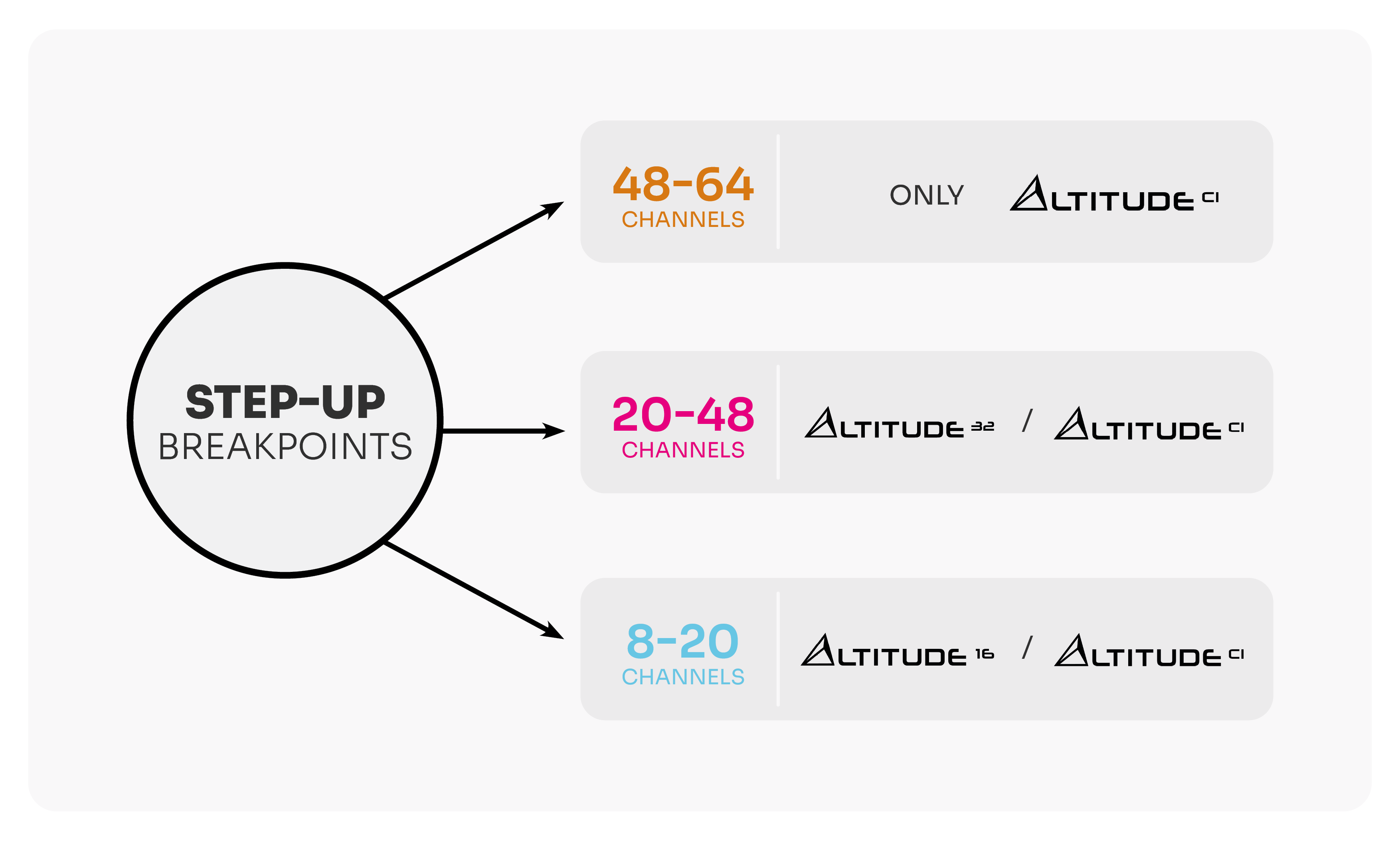 - 20–48 channels → Altitude32 or AltitudeCI both valid choices.