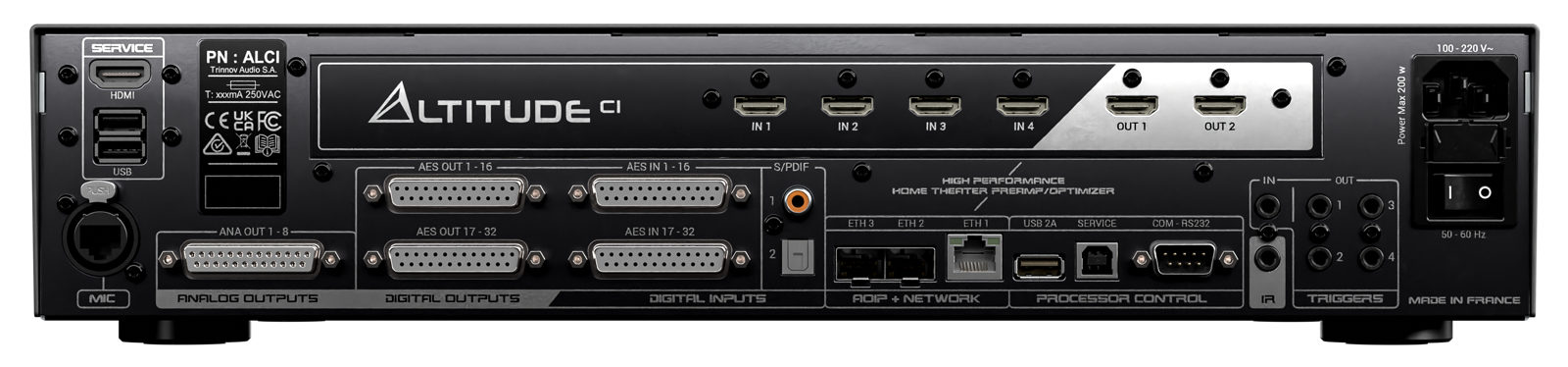 A: Trinnov’s support for AoIP goes back to 2018 in the professional audio world. Our processors have long supported AES67, Ravenna and Dante in pro environments. With the AltitudeCI, this expertise is now extended to residential applications.